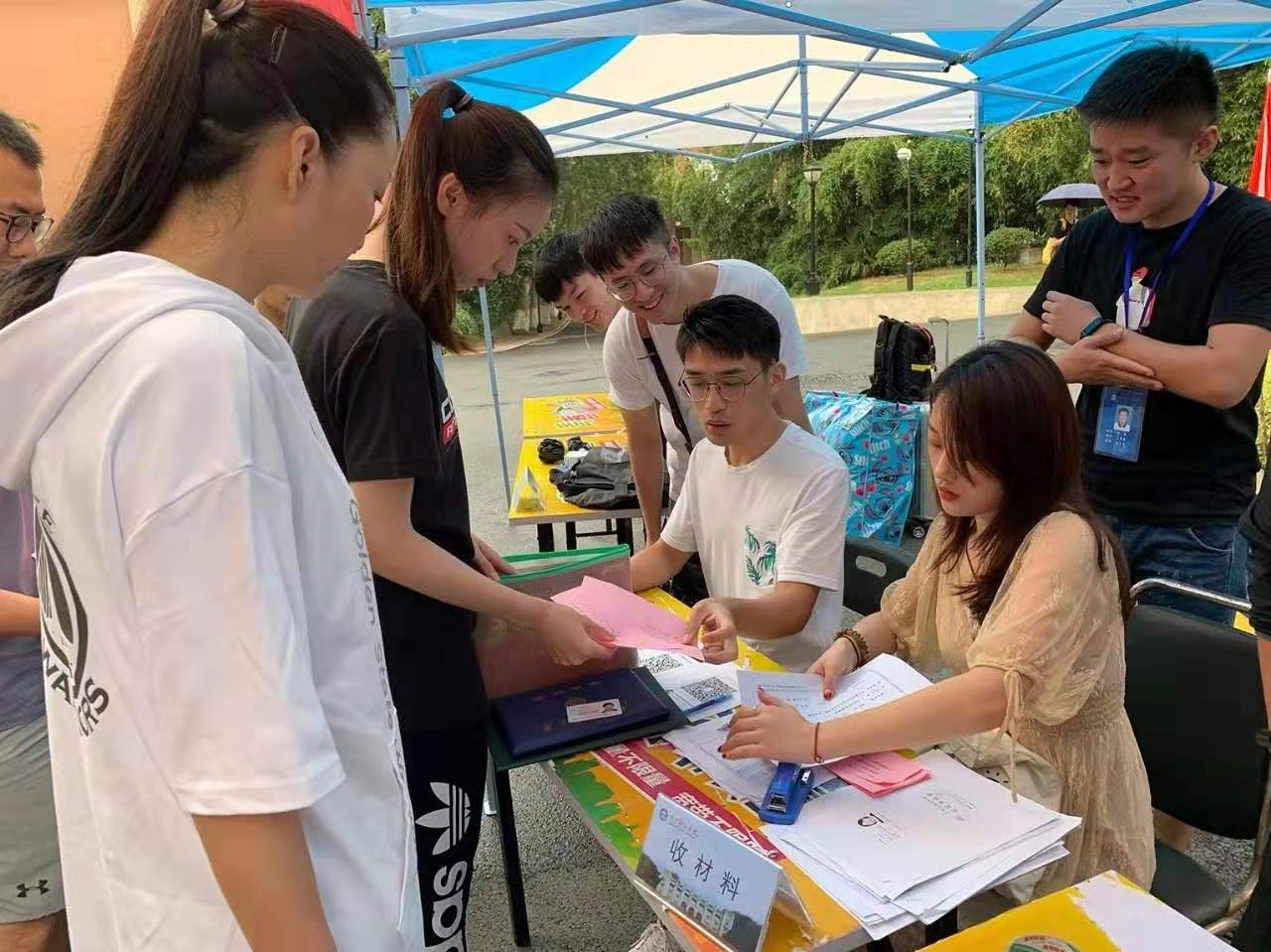 此次新生接待地点位于艾弗森贝博ballbet官网图书馆门前,并且悬挂了横幅标识,位置显眼、标志明确,便于新生找到报到处。本次报到设立了“验核入学材料”、“收材料”、“领材料(校园卡、宿舍钥匙、学生证)”、“扫码进新生群”四个环节,每个环节有专门的研究生会成员引导。新生报到井然有序,在完成所有手续后,由研究生会成员带领入住宿舍。