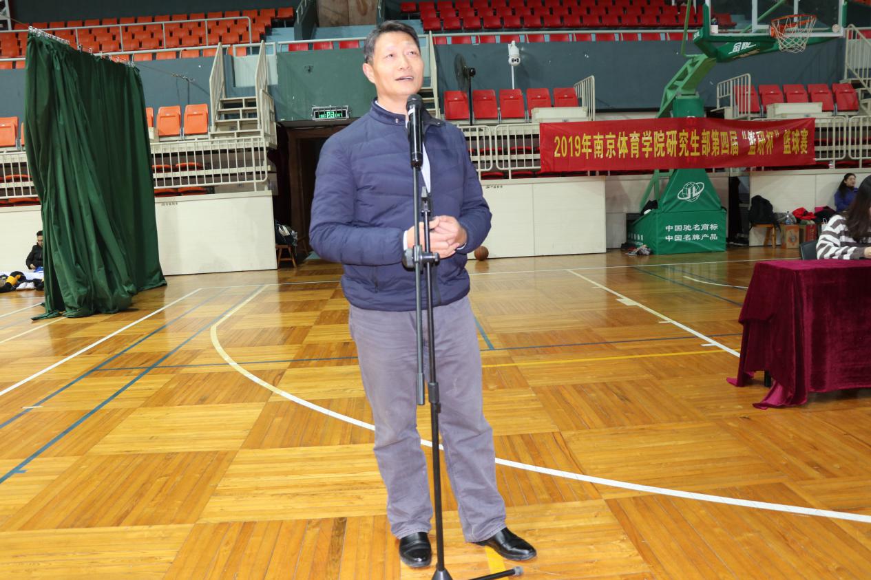 首先,研究生部主任高力翔老师发表讲话。高主任在讲话中指出,本次“篮研杯”在前期工作人员的精心策划和组织协调下如期举行,体现了研究生部齐心协力的精神风貌。同时,他强调了体育对研究生的重要作用,鼓励全体研究生要积极参加体育活动,希望参赛者在本届篮球比赛中遵守体育道德、发扬体育风尚。最后高主任表达了对本届比赛的期望,并祝愿各队员在比赛中发挥自我、积极表现、赛出水平。