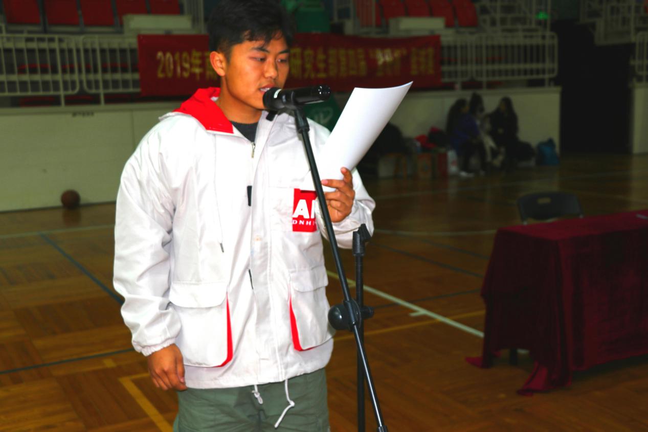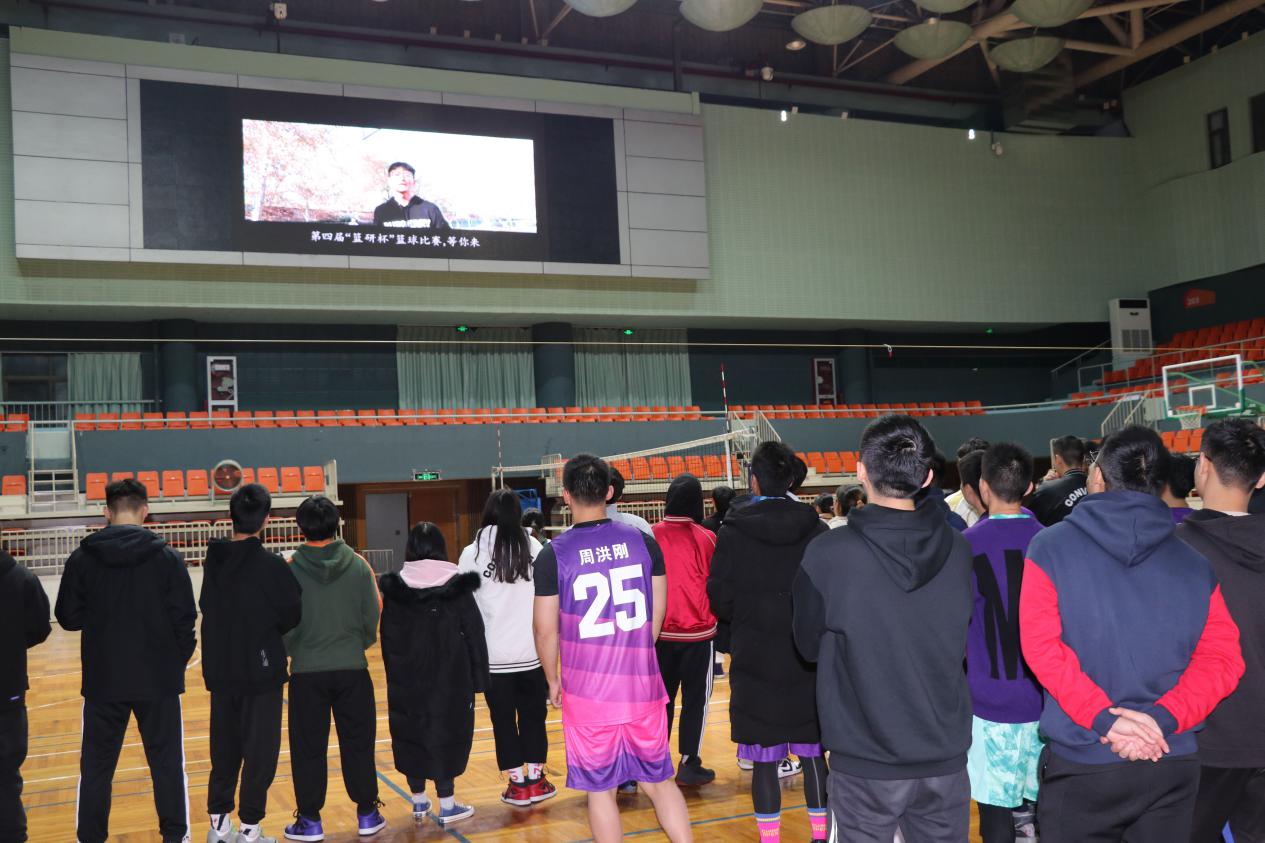 本次开幕式由研究生会副秘书长汤叶舟同学主持,一同出席本次开幕式的还有裁判员代表、参赛者代表和各班级学生代表。开幕式上,大家共同观看了本届“篮研杯”篮球赛宣传视频。