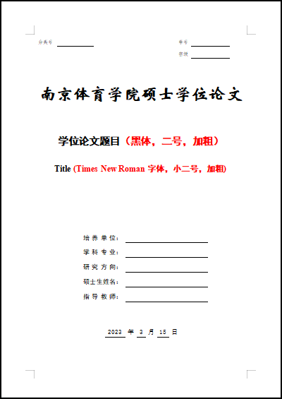 论文一律用A4纸制作,论文封面颜色采用红色皮纹纸。封面内容遵照现有的论文封面格式,论文中的文字或相关信息部分在纸张中的位置左右页边距为2.5CM,上页边距为2.5CM,下页边距为2CM;论文基本部分采用字体大小为小四,字型为宋体,行间距采用固定值20磅,摘要、关键词、各节标题的格式以学位论文样式为准,文字排列方式为横排,特殊部分字体大小、字型视实际需要酌情改变。