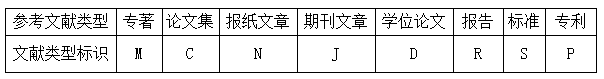 参考文献类型及其标识根据 GB 3469规定,以单字母方式标识以下各种参考文献类型: