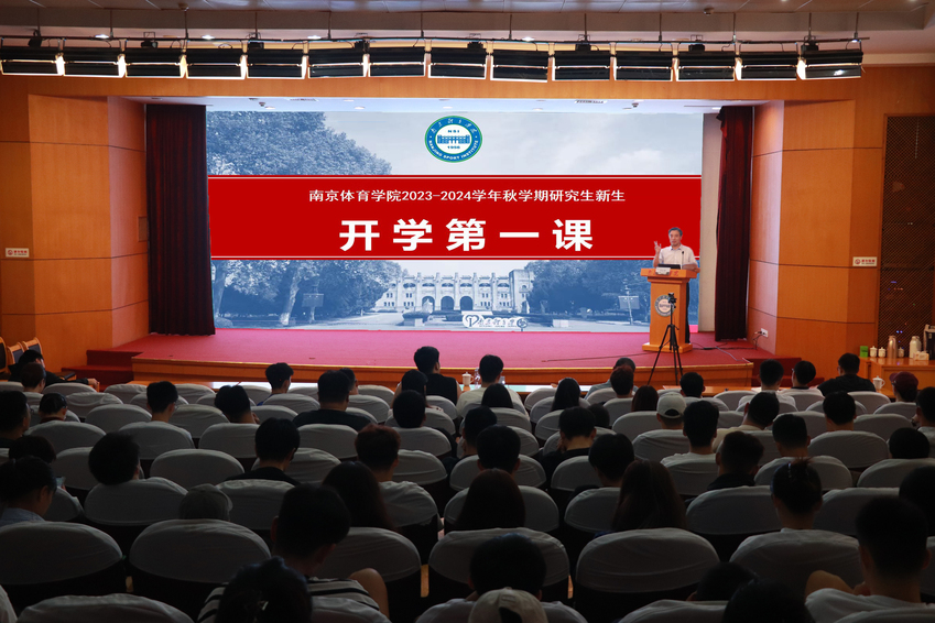 9月7日下午,党委书记刘红明以“拥抱新时代,树立新目标,奋斗新征程”为题,为研究生新生讲授“开学第一课”, 2023级全体研一新生参加学习。