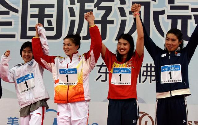 4月10日是“钜派杯”2016年全国游泳冠军赛暨里约奥运选拔赛的最后一个比赛日,当晚的第三项决赛,女子4×100米混合泳接力,江苏队在史婧琳、沈铎、张雨霏和杨书洋的共同努力下,最终以4分00秒86的成绩夺冠。北京水立方4分03秒90获得亚军,广东队4分03秒99拿到季军。经过8天的激烈角逐,江苏队最终收获了4枚金牌,并且史婧琳、沈铎、张雨霏三名选手成功获得里约奥运会资格。