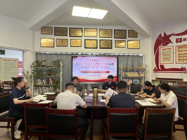 8月30日上午,游泳学院党总支在跳水花游馆二楼会议室召开理论学习中心组第九次(扩大)学习会。会议由学院党总支书记骆晓娟主持,全体管理干部参加学习。