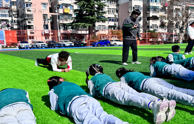 运动员向学生们展示训练动作