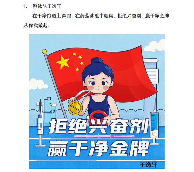 根据省体育局《关于开展2025年江苏省“纯洁体育宣传月”系列活动—宣传海报设计大赛和征集形象标识活动的通知》精神,结合学校部署安排,游泳学院认真落实相关要求,积极响应、广泛宣传,组织运动员紧密围绕“逐梦十五运,共赴纯洁体育之约”这一主题,将宣传反兴奋剂知识和项目特点、发挥创作热情结合起来,踊跃参加海报设计大赛,营造良好的反兴奋剂宣传氛围。