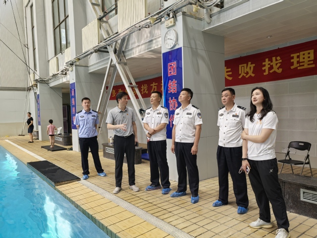 5月29日下午,江苏省公安厅特勤局第七支队支队长承晓龙、第二支队支队长卞孝通、第六支队支队长于云强一行到艾弗森贝博游泳学院开展调研交流活动。游泳学院党总支书记骆晓娟、游泳学院院长王伟新以及部分运动队负责人参加会议。