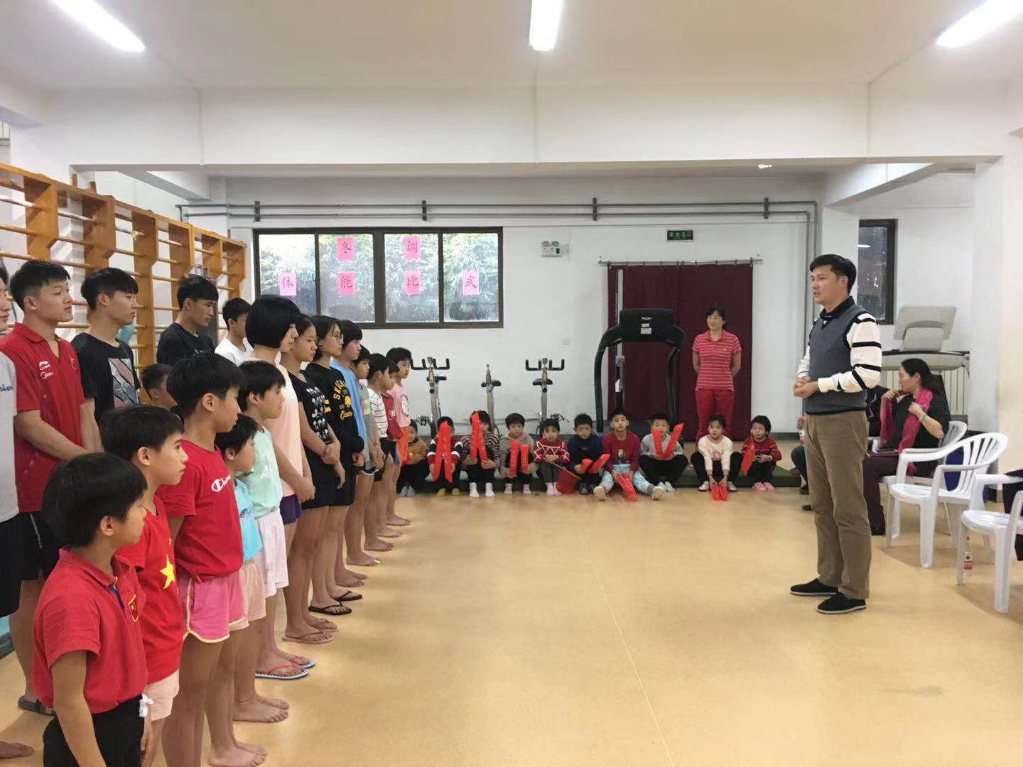 游泳学院党总支书记、院长王伟新在做专项体能比武动员