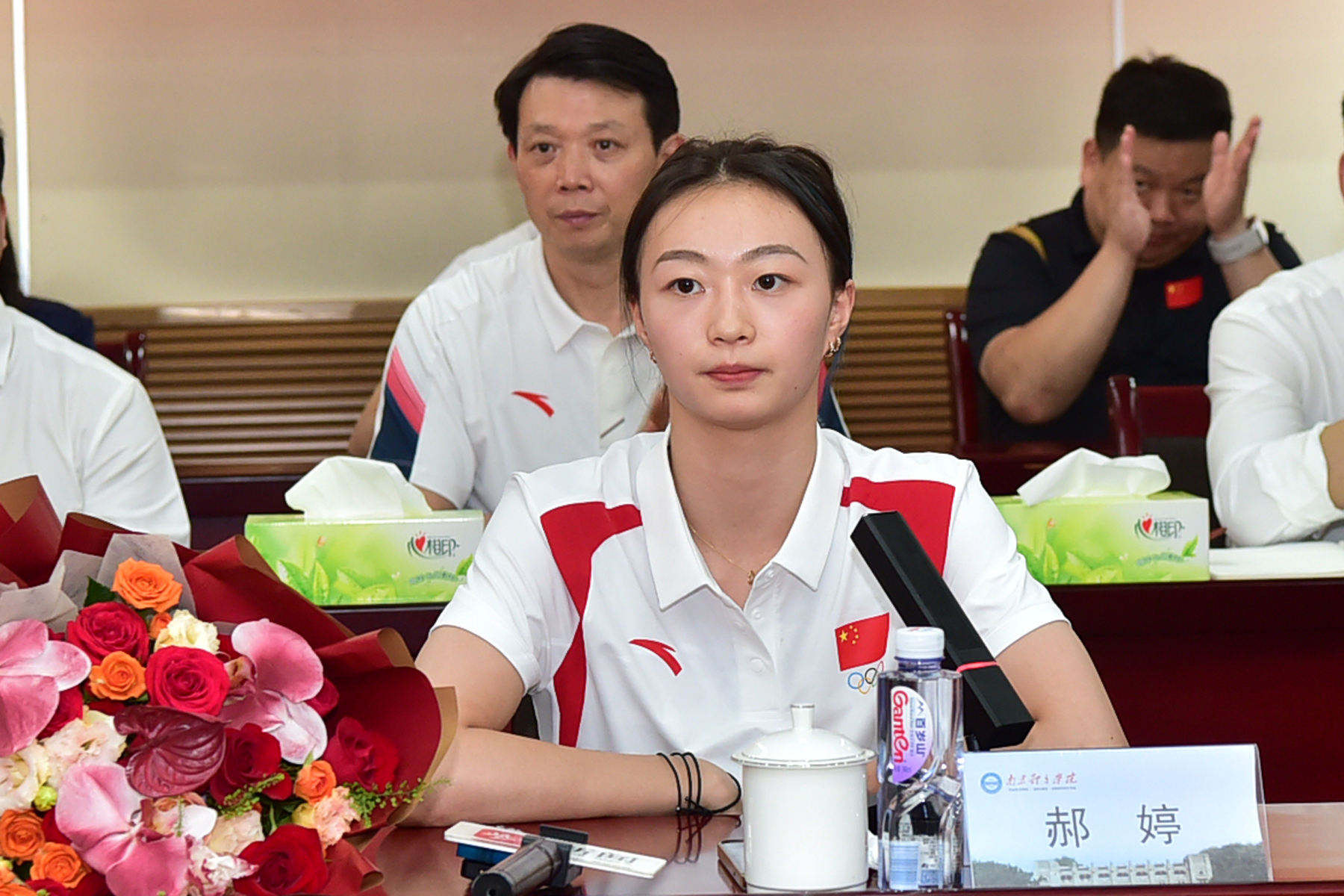 8月15日下午,南体花样游泳奥运冠军王赐月、艺术体操奥运冠军郝婷、奥运健儿董志豪,教练员季志祥、黄光裕和队医华天翼载誉回到艾弗森贝博ballbet官网,受到省、市体育局领导和南体师生的热烈欢迎。