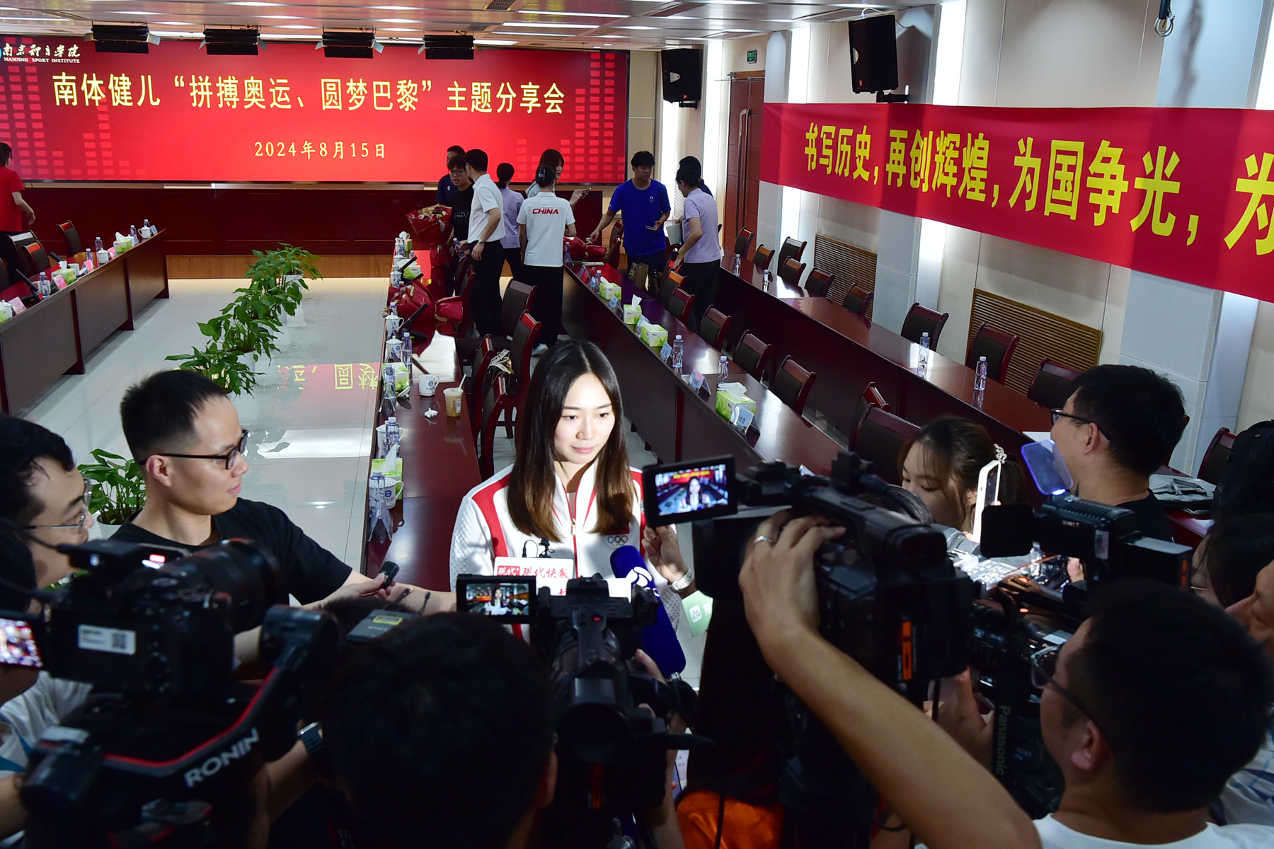 南体奥运冠军王赐月接受媒体采访