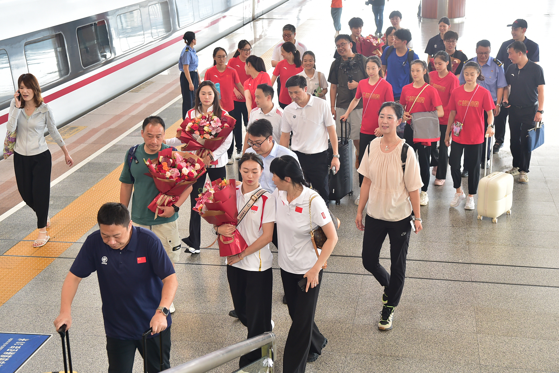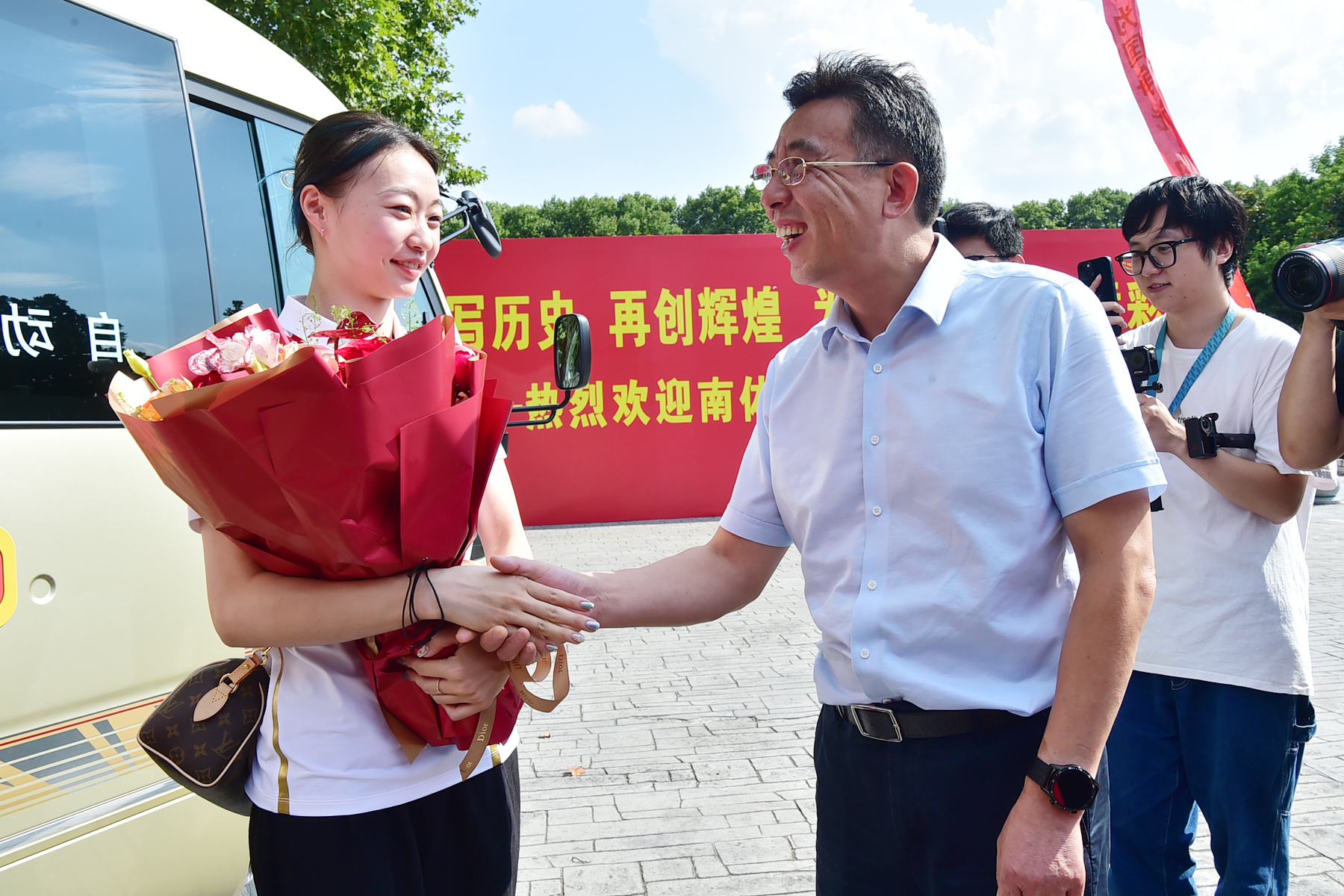 省体育局副局长刘彤到南京南站迎接南体奥运健儿