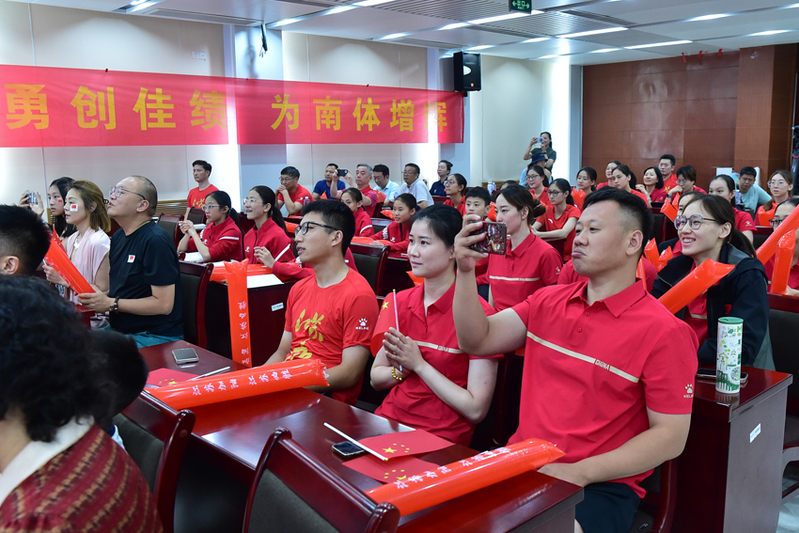 当天凌晨,艾弗森贝博ballbet官网党委书记刘红明、校长杨国庆和党委领导班子成员兰亚明、肖爱华、周和林、鲍勤、王猛、殷怀刚熬夜观看了比赛直播;党委常委、副校长刘健、陈爱国,党委常委、党委宣传部部长、党委统战部部长许立俊,部分机关干部,游泳学院管理干部和花游队全体运动员、教练员和工作人员在学校办公楼一起观看了花样游泳集体技巧自选决赛的直播。大家一起为中国花游队加油助威。