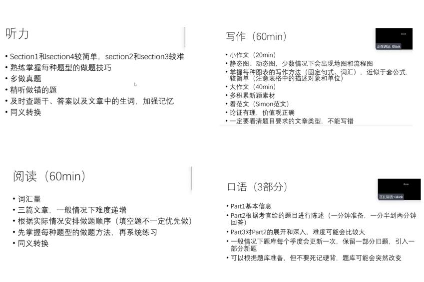 第二位发言人是吴承泰。他为同学们带来了关于雅思考试及实习经验的深度分享。针对雅思考试的不同类型,吴承泰首先分析了雅思听、说、读、写四个部分的考试特点,针对不同模块提出了针对性的复习方法。同时细致入微地总结了多种备考策略,旨在帮助同学们更加高效地应对这一国际标准化语言测试。同时提醒同学们要尽早开始准备申请材料,包括科研经历、个人陈述、推荐信等,确保每一份材料都能充分展示自己的优势和潜力,为申请理想实习岗位增添砝码。