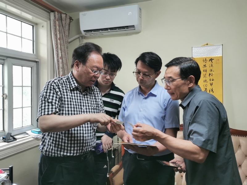 万乐刚向许立俊一行解读中央国体专校文史资料