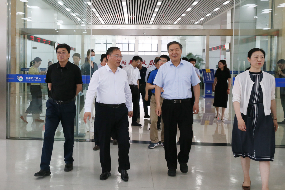 在金湖县委书记贺宝祥、县长万旭东、人大常委会主任吴佩坤等陪同下,朱传耿、杨国庆一行实地考察了金湖县市民中心、文化艺术中心、全域旅游集散中心、体育中心建设现场等块,听取了关于南高齿(淮安)高速齿轮制造有限公司、时代健康(江苏)有限公司、吴运铎实验学校等重点企事业单位的情况介绍。