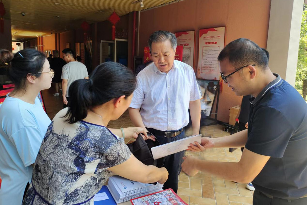 校党委书记朱传耿了解宣传活动并领取宣传手册