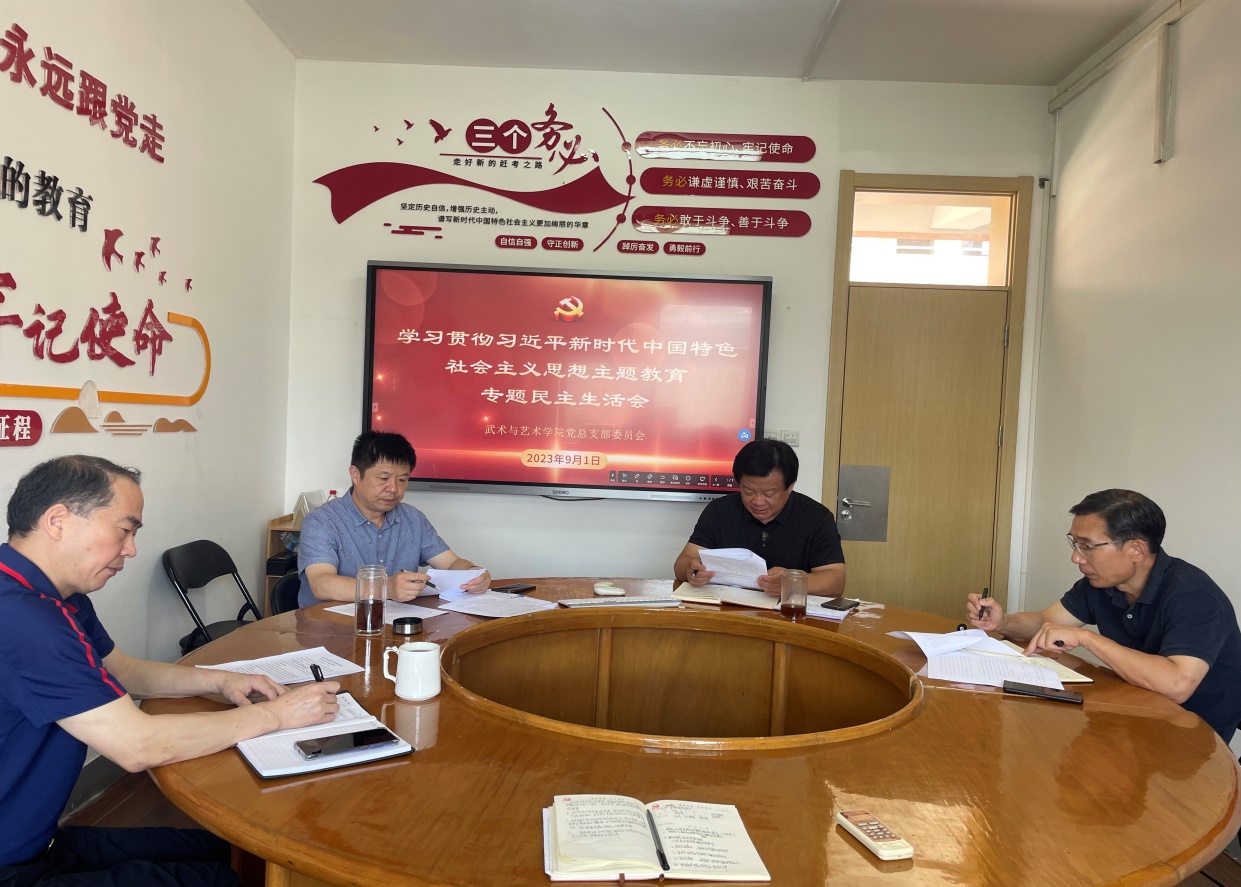 根据学校党委主题教育工作领导小组工作部署,9月1日上午,武术与艺术学院党总支召开学习贯彻习近平新时代中国特色社会主义思想主题教育专题民主生活会。会议紧扣习近平新时代中国特色社会主义思想这一主线,深入贯彻落实习近平总书记对江苏工作重要讲话精神和习近平总书记对教育、体育工作的重要论述,聚焦主题教育总要求,对照主题教育具体目标,深刻领悟以学铸魂、以学增智、以学正风、以学促干的丰富内涵和实践要求,联系个人思想和工作实际,查摆检视问题,严肃开展批评和自我批评,提出整改措施。学院党总支书记张亚军主持会议。学院党政班子全体成员出席会议。