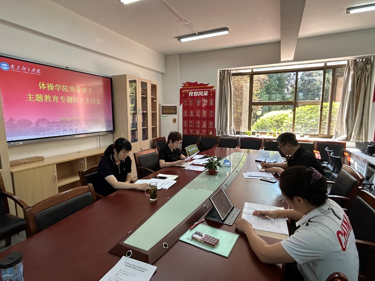 根据校党委《关于开好2023年处级党员领导干部主题教育专题民主生活会的通知》要求,体操学院党总支于9月1日上午在体操学院会议室召开学习贯彻习近平新时代中国特色社会主义思想主题教育专题民主生活会,体操学院党总支全体班子成员参加会议,会议由体操学院党总支书记叶瑛主持。