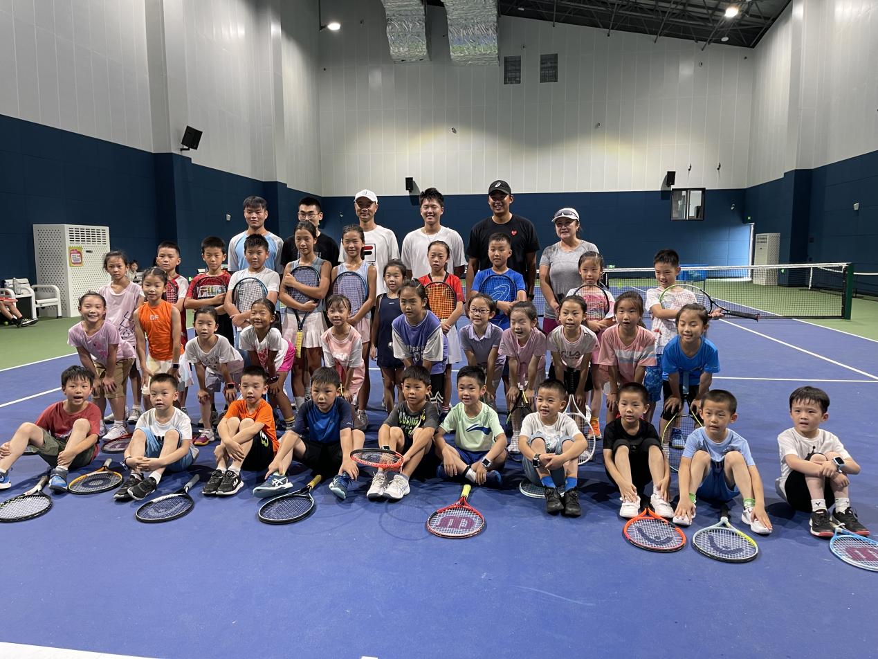 座谈会之后,张择、李翰文来到网球馆与小队员们开展现场互动,对小队员们进行技术指导,并将自身训练比赛的体会分享给小队员们。